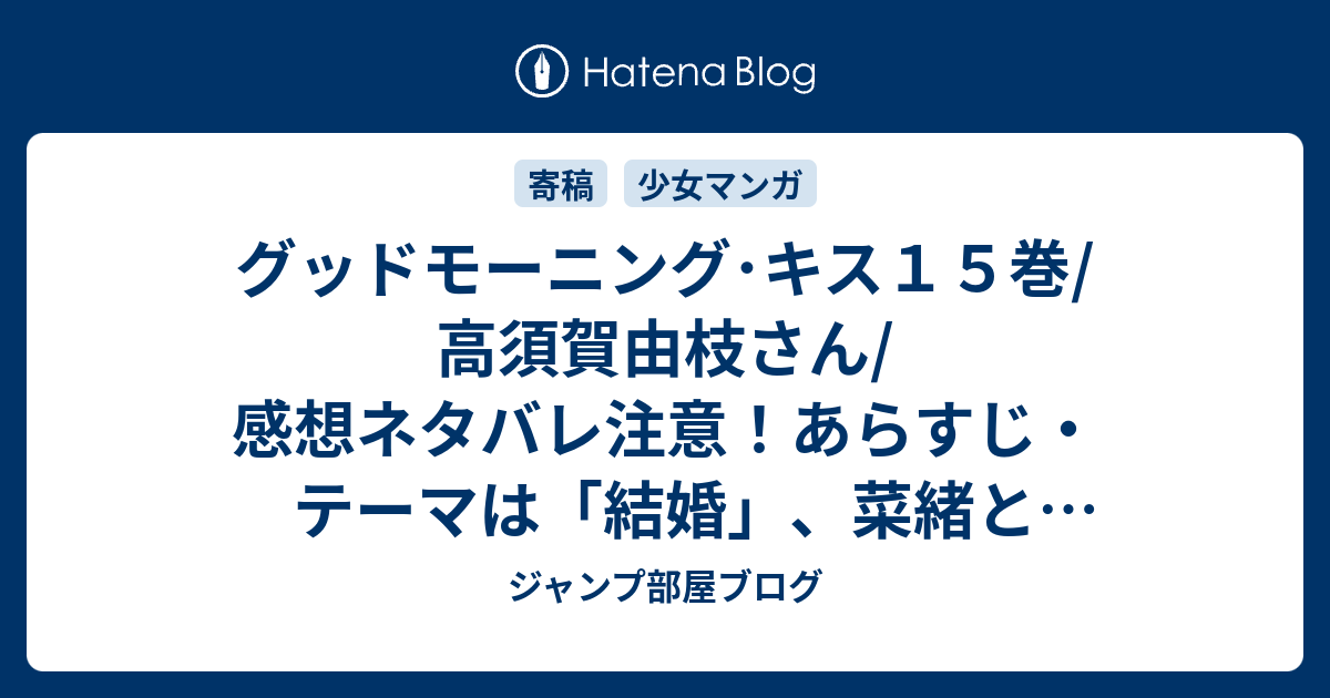 グッドモーニング キス15巻 高須賀由枝さん 感想ネタバレ注意 あらすじ テーマは 結婚 菜緒とまりなの友情を改めて素敵だな と Comic ジャンプ部屋ブログ