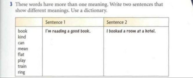 Solved 3 These Words Have More Than One Meaning Write Two Chegg Com